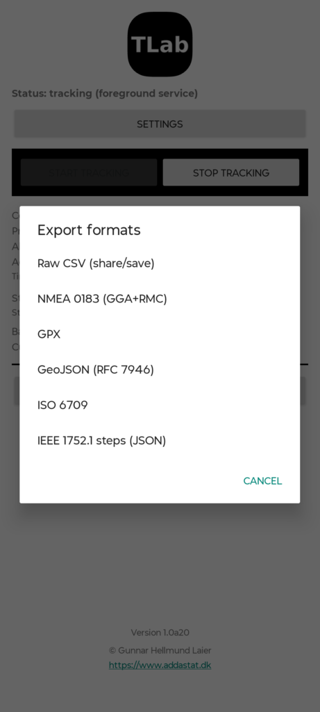 TrackerLab is built for anyone who wants full control of their activity data—without the clutter. Track GPS routes and steps with accuracy, keep recording in the background, and fine-tune the experience with a wide range of settings. Everything is designed to stay clear and easy to use. Export your sessions in 5+ popular formats, share files directly from the export menu, or download a CSV to work with your data in Excel, Google Sheets, or your own tools.